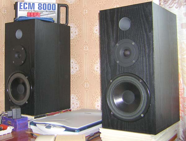 По фильтрам - зарисовать забыл, т.к. подбирал в процессе настройки, но они почти как у полочников, только номиналы несколько отличаются. Вообще рисовать по идее смысла нет, т.к. у динамиков разброс большой, все-равно надо мерять и делать индивидуально. Кондеры на ВЧ поставил Аudyn-cap (4,7 мкф) - заказал на samodelka.ru вместе с фазиками, вспомнил - еще стоит индуктивность на 0,45 мгн (2-й порядок). На НЧ - 0,5 мгн + Цобель (С-30 мкф с R-10 Ом - опять же сопротивление зависит от типа кондера, у меня МБГО). Ну и нормальный аттенюатор на 2 Дб для ВЧ, а не резюк 5 Ом как в полочниках.